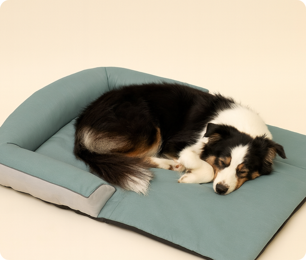 Cama ampla e confortável com encosto e proteção frontal, feita com tecido leve que não esquenta. Ideal para o pet relaxar mantendo o frescor mesmo em dias quentes.