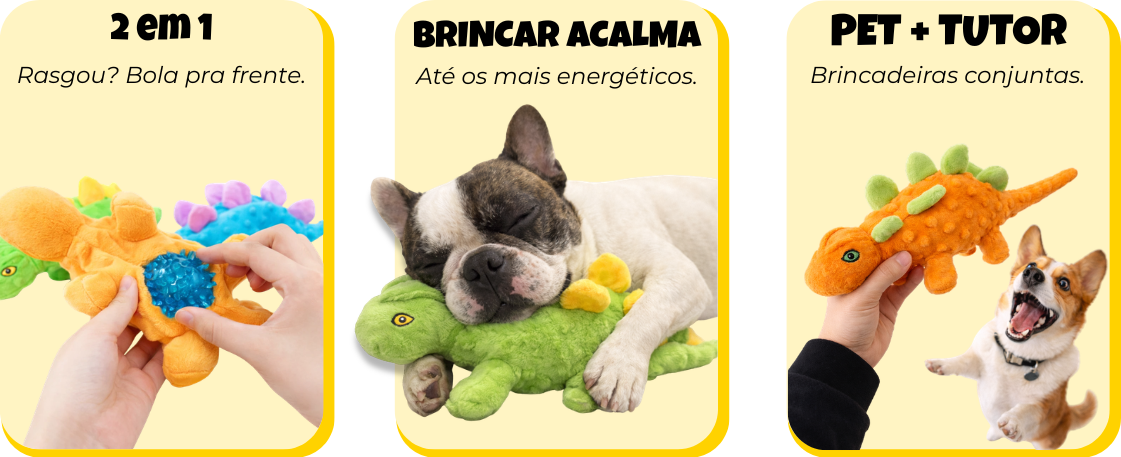 Material Interno: Enchimento de fibra sintética com bolinha interna com apito (squeak) e papel tátil