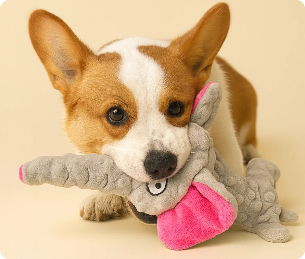 Fofo, alegre e cheio de charme, o Elefante Amigo vai encantar seu pet, garantindo diversão e companhia em todos os momentos.