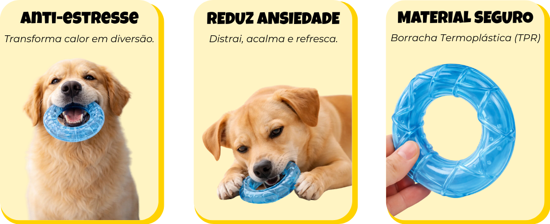Alívio refrescante e estímulo para os dias de calor intenso. A estrutura resistente com textura estratégica auxilia na mastigação enquanto proporciona conforto térmico durante a brincadeira.