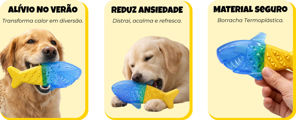 Sistema Interativo: Coloque o mordedor em um recipiente com água e pressione-o para que absorva o líquido em seu interior. Em seguida, leve-o ao freezer até que a água esteja completamente congelada.
