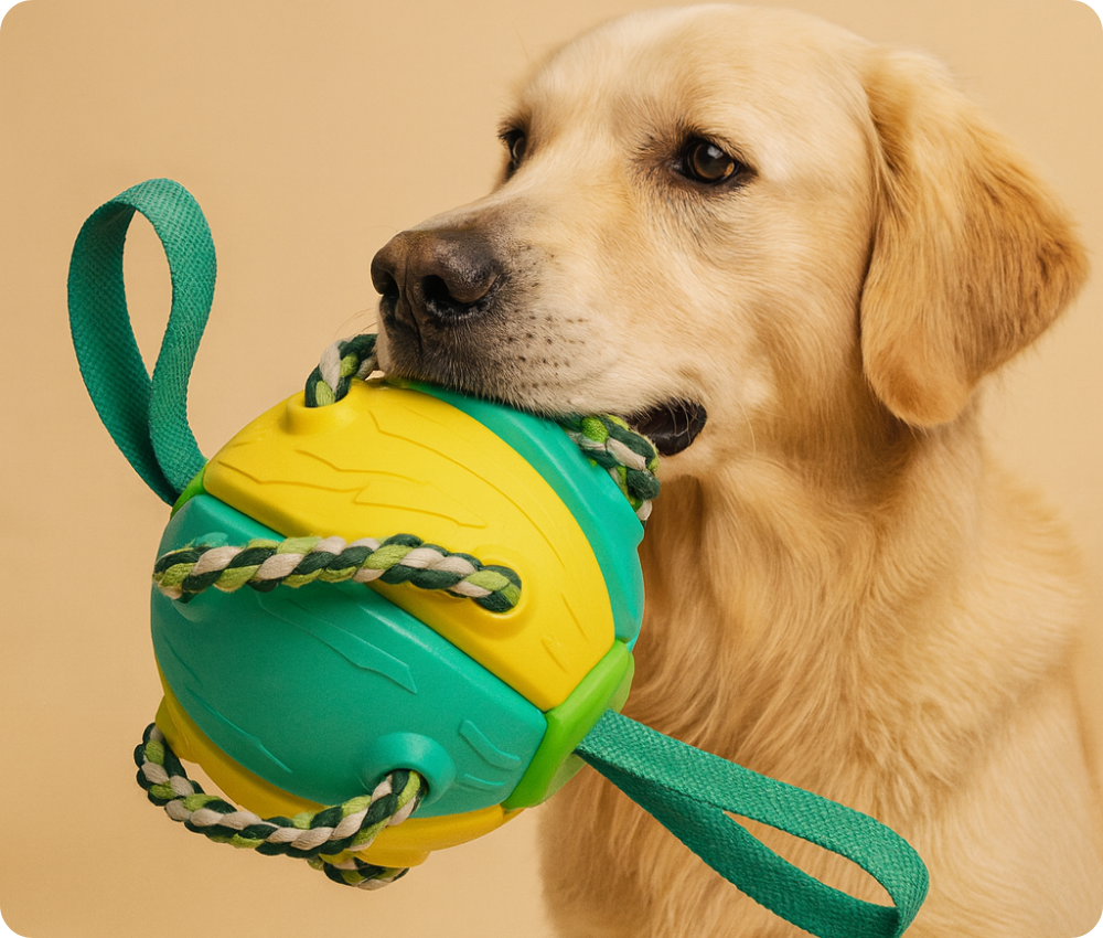 Bola resistente com cordas entrelaçadas, perfeita para brincar por horas. Estimula a força da mordida e mantém o cão ativo com diferentes formas de interação.