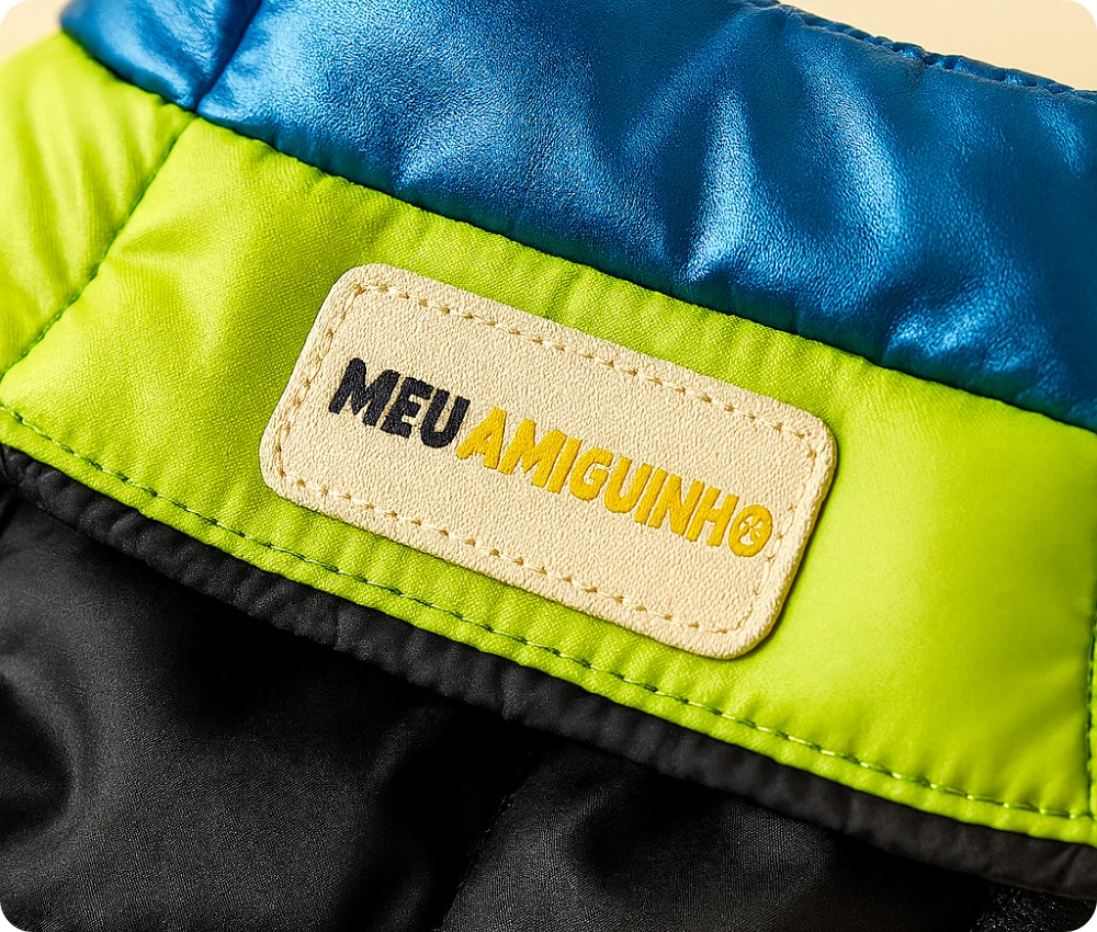 Peça com enchimento interno que proporciona volume e isolamento térmico, ideal para o frio intenso. Acabamento brilhante e alça peitoral ajustável com fivela, unindo estilo urbano e funcionalidade.