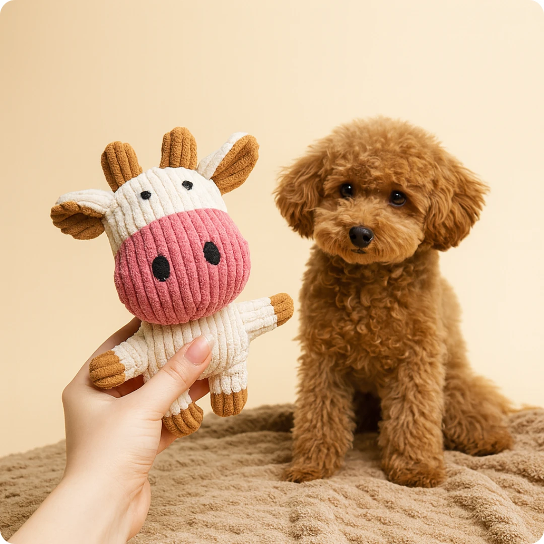 Com esse focinho rosa fofo e um jeitinho divertido, ela vai conquistar seu pet! A diversão na fazendinha está garantida com a Vaquinha por perto!