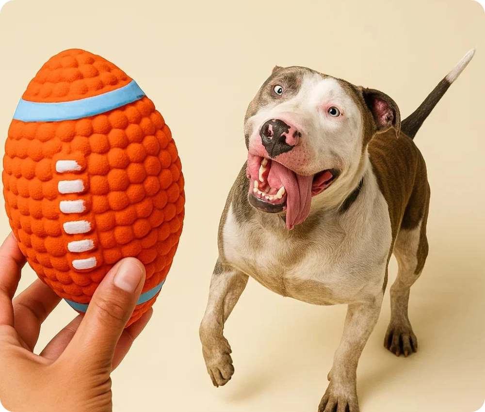 Brinquedo em formato de bola de futebol americano, perfeito para brincadeiras animadas. Textura macia e resistente que estimula a mordida e diverte o pet.