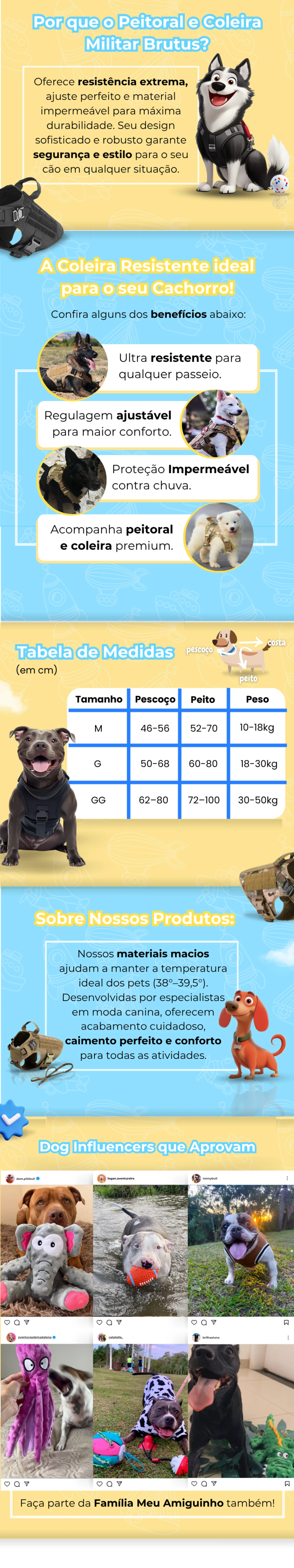 Peitoral e Coleira Militar Brutus - Material Resistente, Impermeável e Ajustável