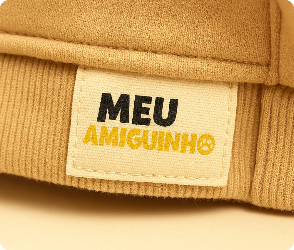 Bege neutro e elegante, tecido macio que envolve seu pet.
