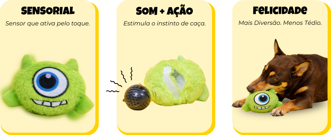 Sistema Interativo: Vibração automática com emissão de sons, com ciclo de 12 a 20 segundos, ativada por movimento e impacto