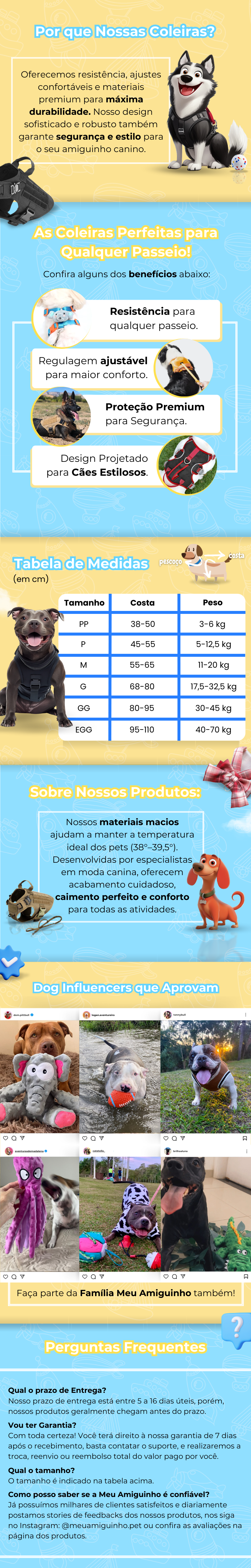Peitoral Para Cachorros Ajustável com Nome Personalizável