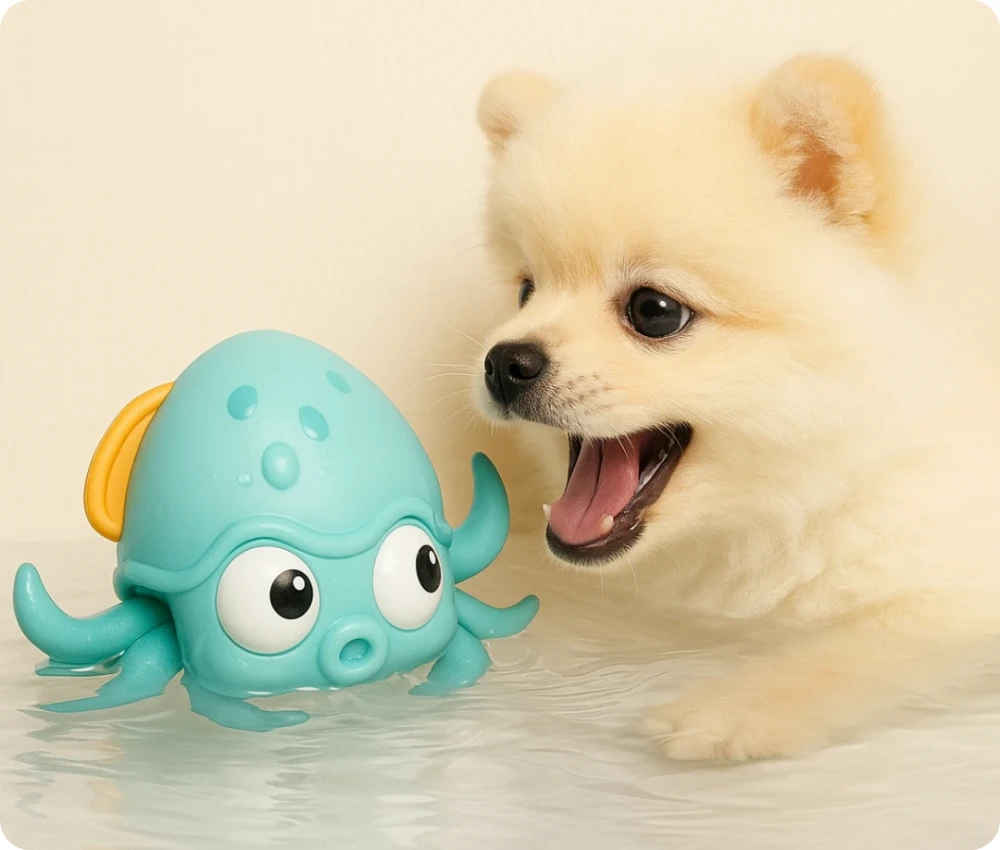 O Lula Feliz transforma a hora da água em um show de tentáculos, fazendo seu pet se divertir sem parar.