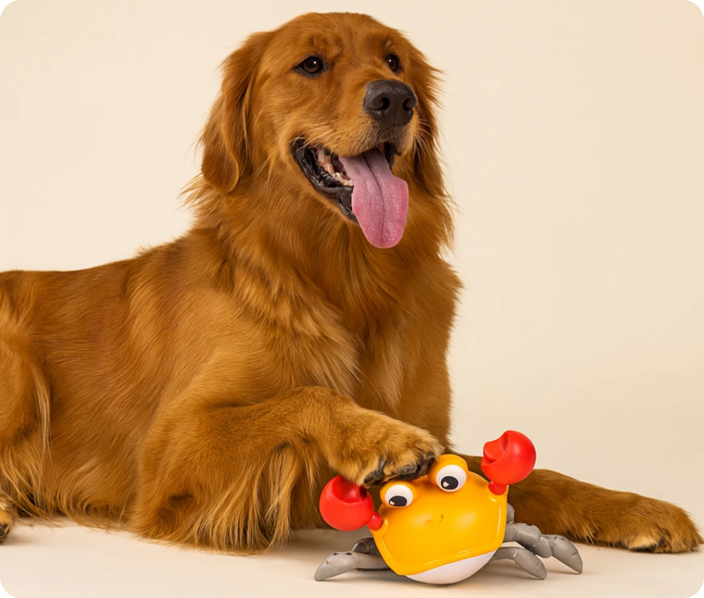Brinquedo aquático em formato de caranguejo, com garras e design colorido. Ideal para brincadeiras na água, garantindo diversão e estimulação para o pet.